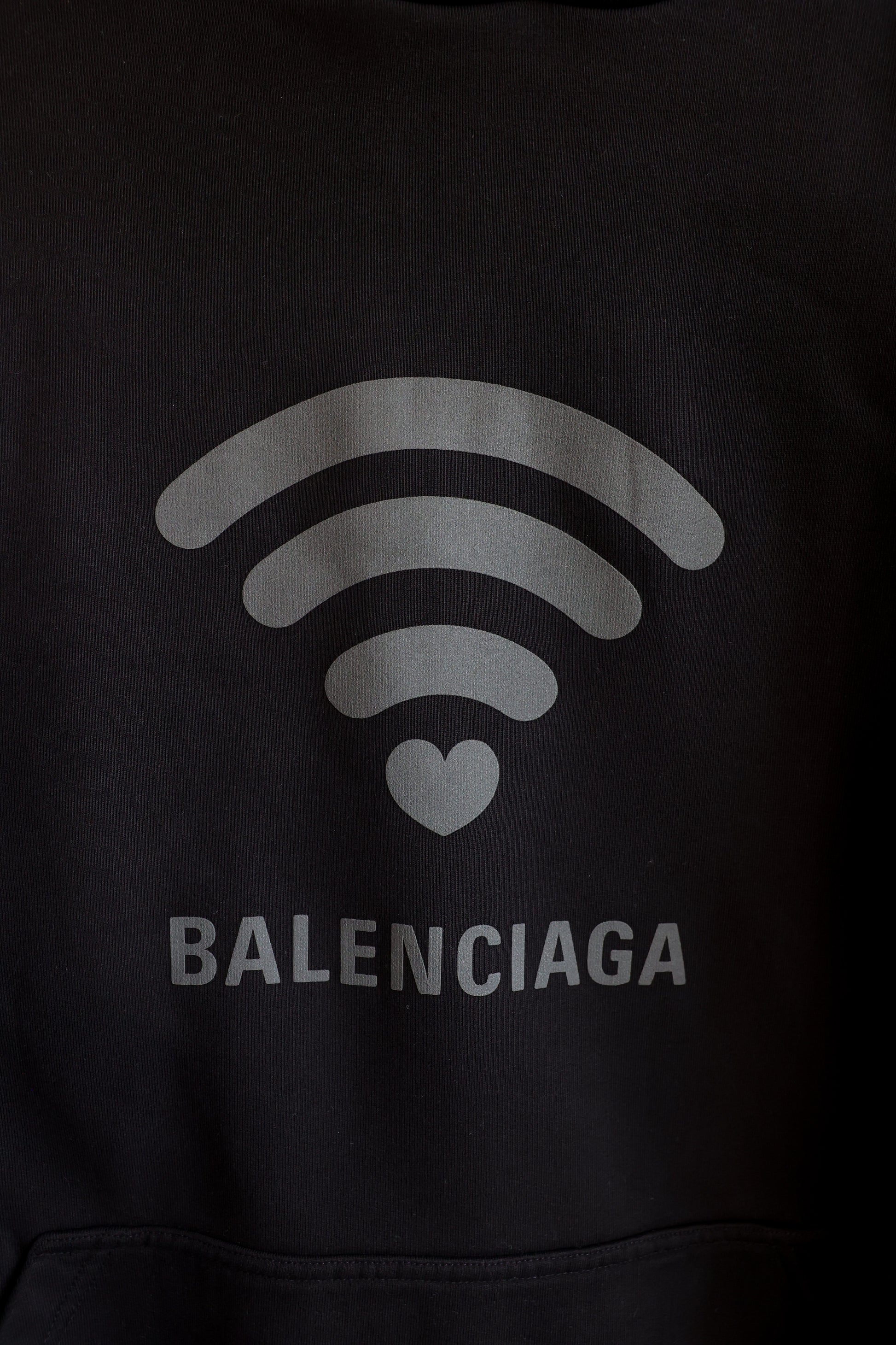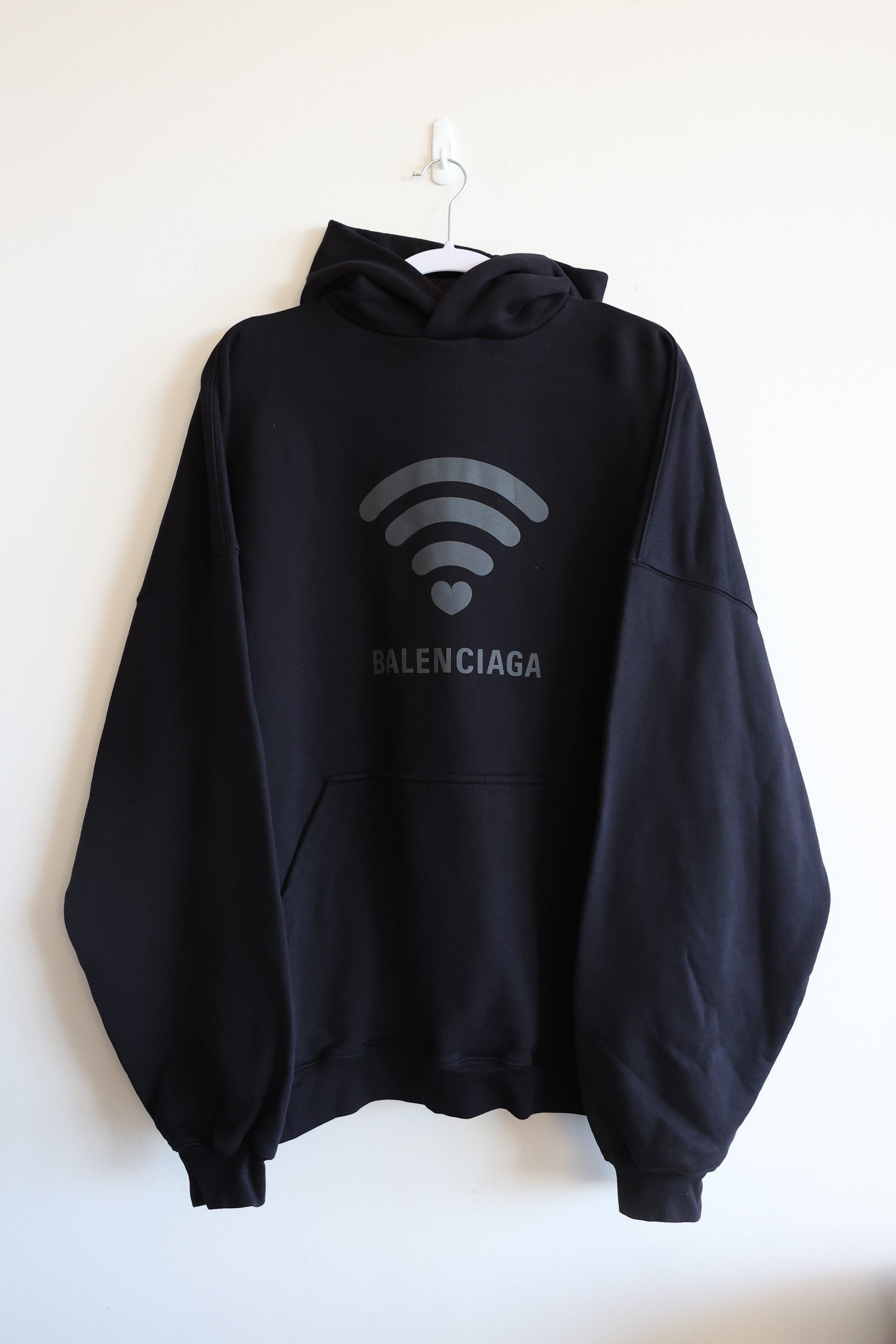 Details: Black cotton hoodie with a heart wifi signal and Balenciaga logo in gray