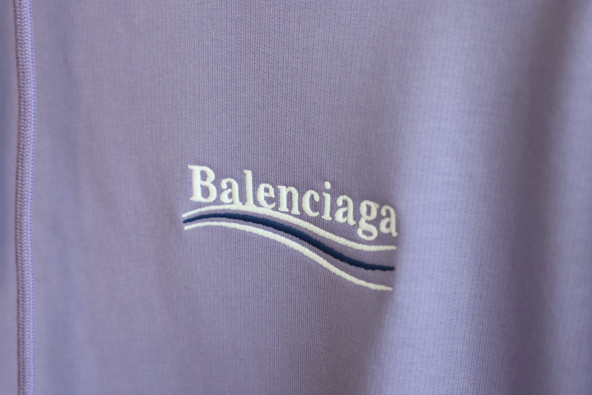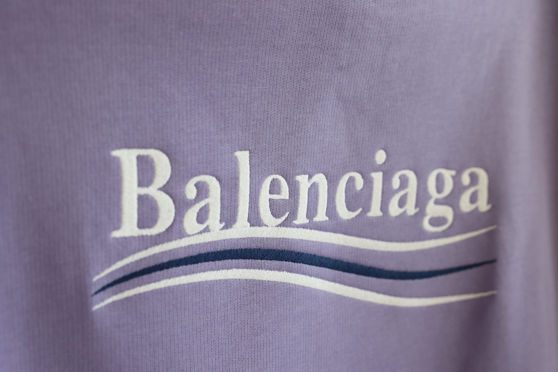 Details: Light purple cotton hoodie with embroidered political campaign Balenciaga logo on front and back