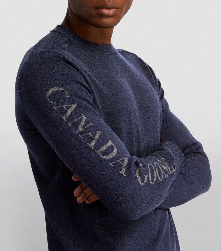 Details: The Welland Sweater is a durable, warm midweight crewneck made from premium Italian Merino wool. Designed for layering in colder weather, it features an articulated rib-knit design for a better fit, drop shoulders, ribbed cuffs and hem for comfort, and a jacquard Canada Goose logo on the sleeve. Made in Europe.