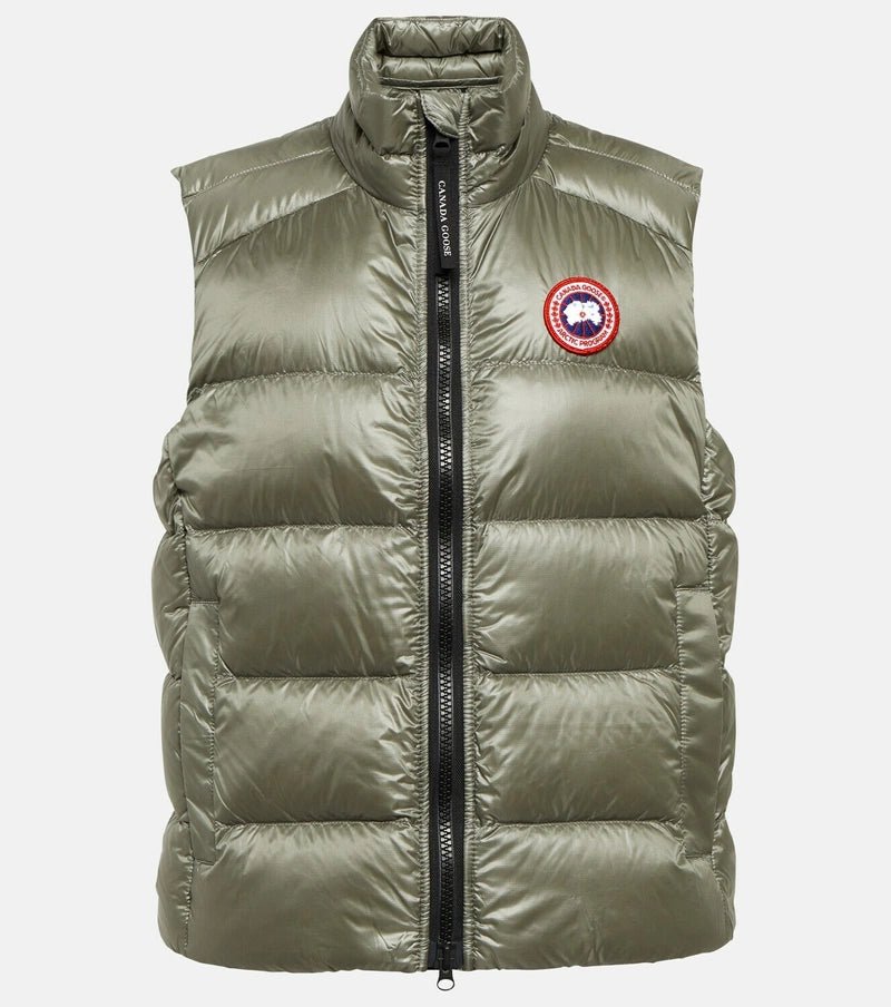 Details: Army green woman’s puffer vest with outfits Canada Goose patch in front