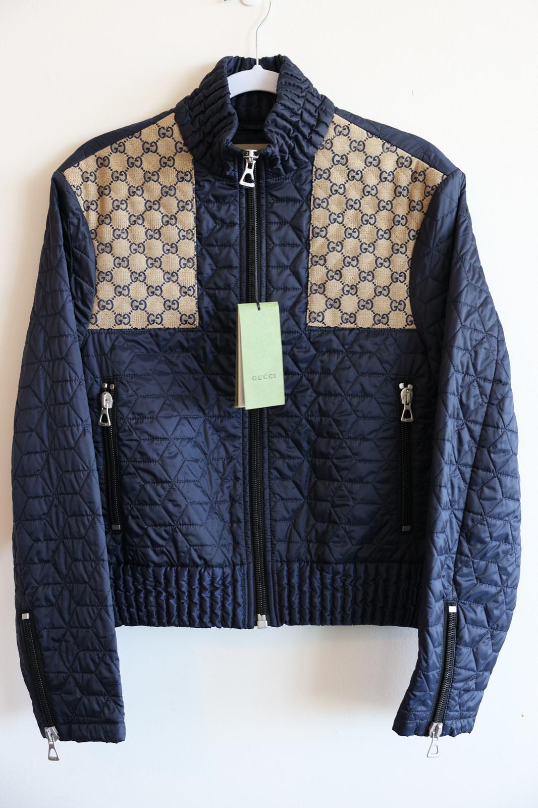 Gucci 715540 GG fabric quilted jacket 48 (180) Navy Mens