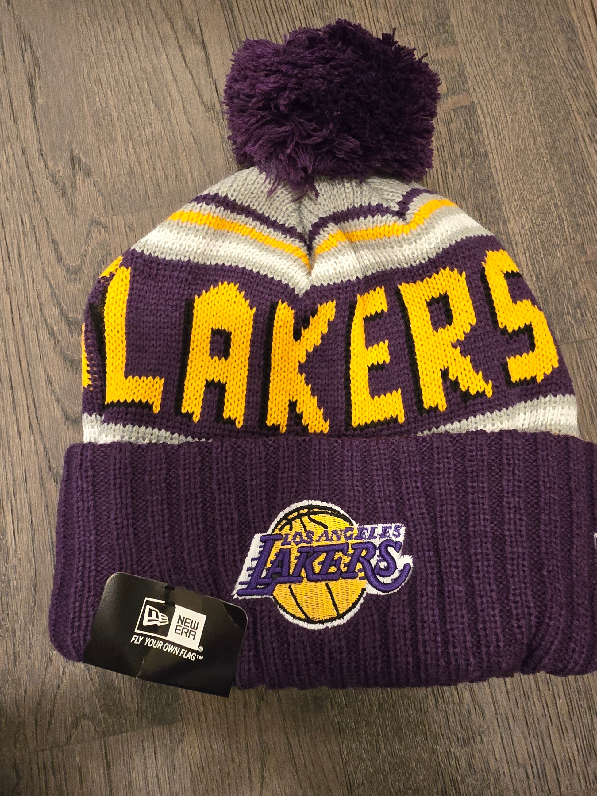Los Angeles Lakers NBA Basketball New Era Knit Purple Pom Pom Hat Cap Beanie NWT